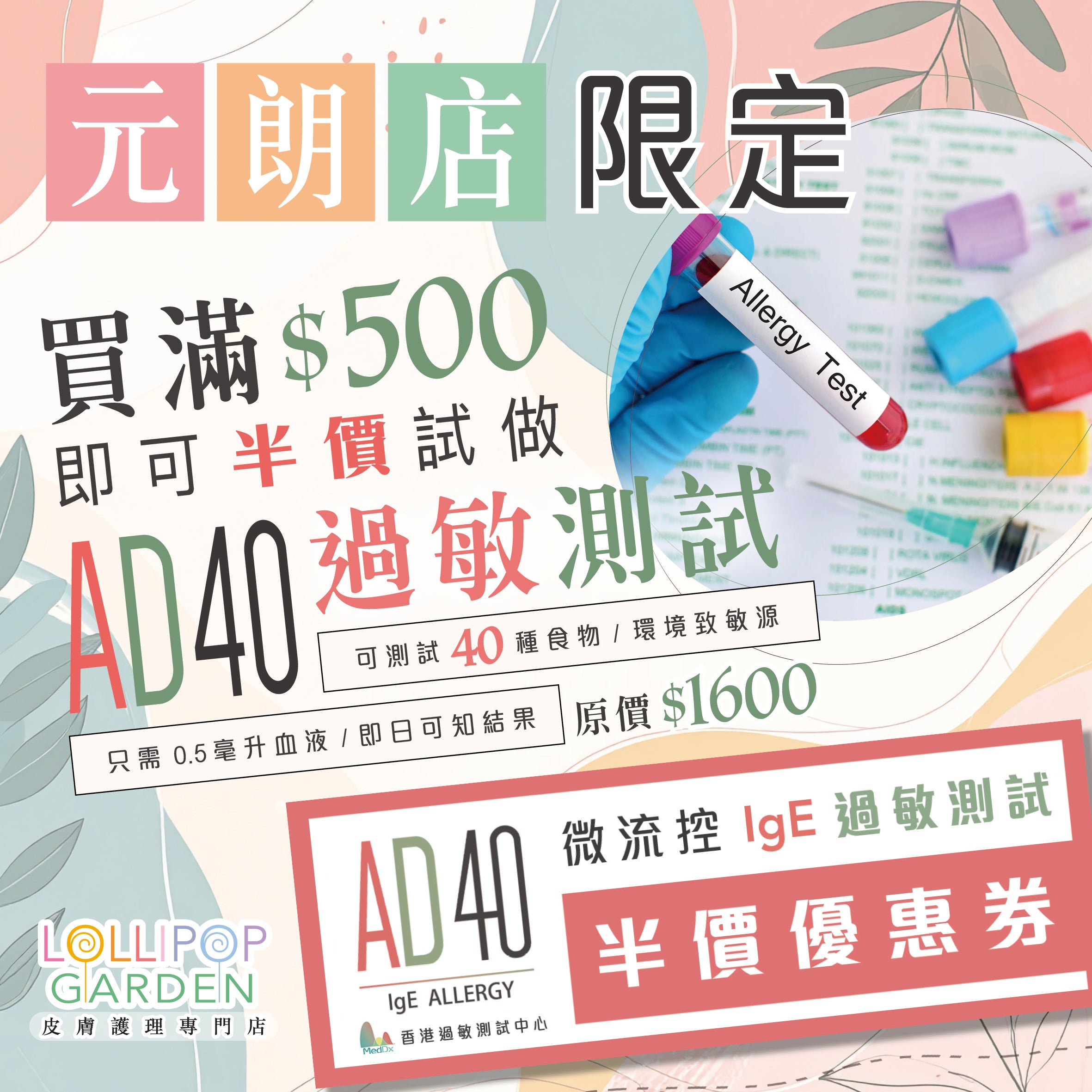 即送您香港過敏測試中心 AD40 IgE 測試「半價優惠券」,